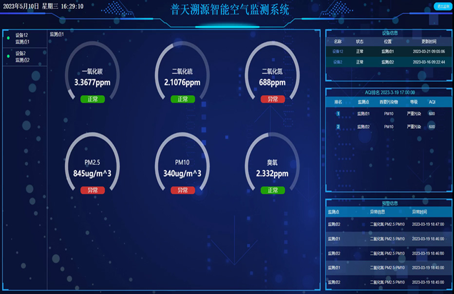 空气质量监测系统实现对空气质量监测数据的采集、统计、分析、可视化呈现。助力打造一个高质量的环境空间。。